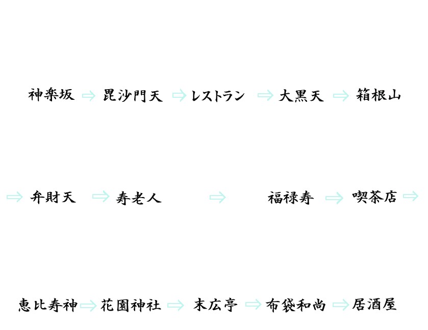 毎年年始恒例の"七福神巡り"、今年は1月10日(木)「新宿山の手七福神」で行いました。 過去に実施した「品川」「深川」とともに、江戸時代から庶民に親しまれ信仰されてきた由緒ある七福神です。 神楽坂の善国寺・毘沙門天を起点に新宿の高遠藩主内藤家の菩提寺・太宗寺・布袋和尚まで公称5.9km(神楽坂路地裏歩き〜箱根山〜新宿散策を加えたので実質約8km)を休憩時間込みで5時間をかけて歩きました。 ほとんどのメンバーが 本年後期 高齢者の仲間入りするとは信じられないほど元気溌剌、しっかりした足取りでした。 |