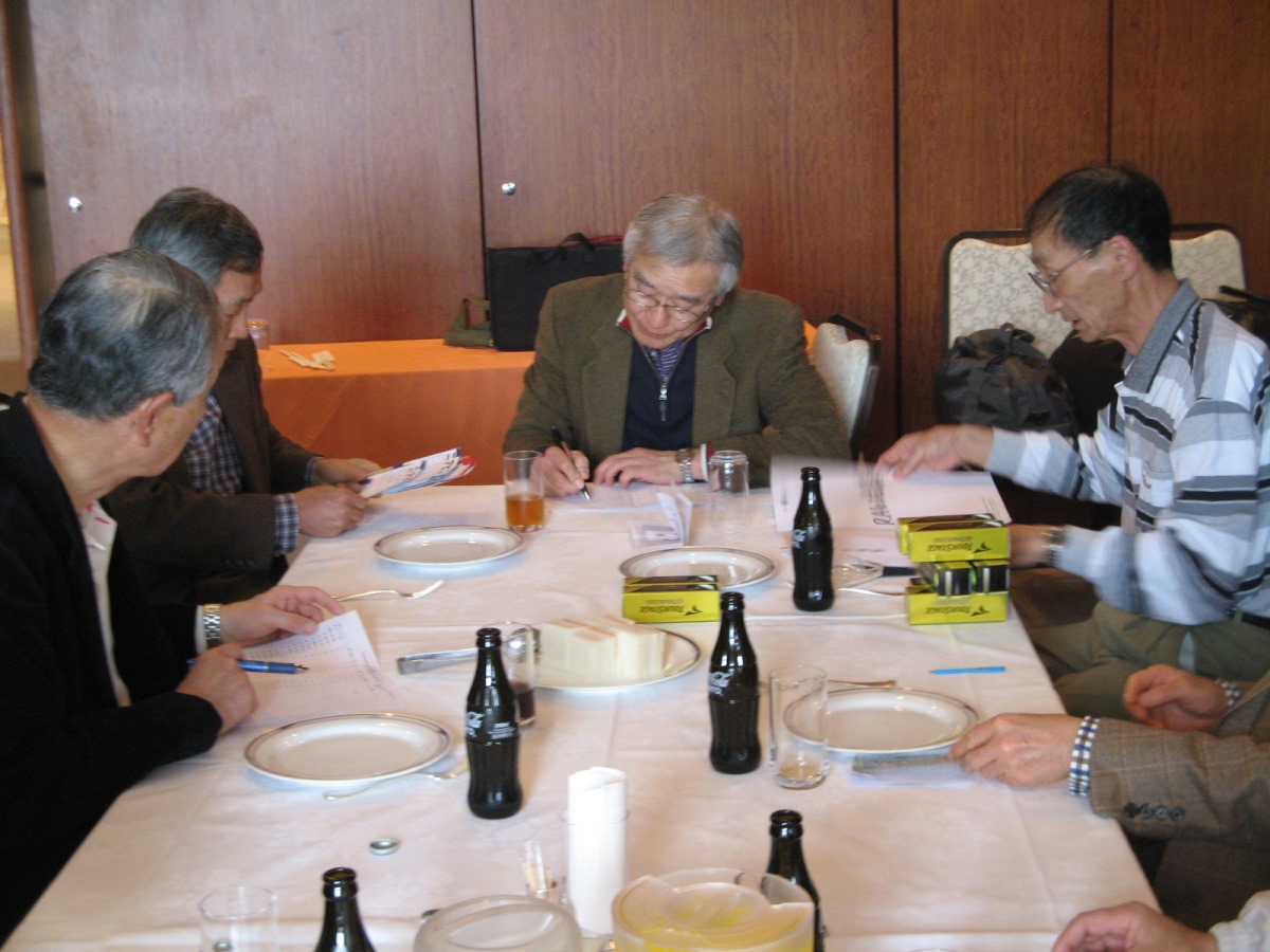 運動部対抗ゴルフ会は、前回の11月26日から4ヶ月ぶりの3月26日(水)に第18回を茨城県かすみがうら市の セゴビアゴルフクラブ イン チヨダにて開催しました。 開催日前日には東京で桜の開花宣言が出され、雪でゴルフ場のクローズが連発された冬からやっと春の暖かさが感じられる 日の開催となりました。 第18回のゴルフコンペは、2年前の4月以来の2年ぶりで池が多いことが定評のコースで、前途多難が予想されるスタートでした。 参加者は前回よりも1名少ない16名でした。 いつもどおり、前回のコンペ結果により見直されたハンデにより、個人戦とクラブ対抗戦が行われ、アトラクションとして、 ニアピン、ドラコン・ドラ短、大波等の各賞が幹事から用意されました。 今回特記すべきことは、なんといってもスタートから3ホール目で当会初めてのホールインワンを「BB賞常連」ともいえる辻村雅男君 が達成したことでした。セルフプレーが大半の昨今では保険の適用が無く、盛り上がりには欠けるものではありましたが、 「兎に角メデタシ」でした。 個人戦の結果は、 順 位氏 名 GrossH'cpNet 1市 川 和 憲1164076 2深 堀 剛 助931677 3加 藤 泰 夫911378 ・・・・・・・・・・・・・ B B望 月 利 満????92 クラブ対抗戦は、各クラブ4人の上位3人の [ Net ] 合計で競い、次の通りとなりました。 順 位ク ラ ブNet 計 1 野 球 部240 2 バレーボール+バスケットボール部241 3 ハンドボール+テニス部244 4 卓 球+水 泳+文 化部255 表彰式/懇親会では、ネット80以上が続出したため、あまり明るい雰囲気とはならず、表彰式と次回ハンデを決め、ホールインワンの辻村君からの言葉ももらいました。 ボール紛失7個以上が3人もいて懲りたためか、次回は再び新千葉CCとして、さらに幹事と日程を決め、入賞者の記念写真を撮って散会となりました。 **全員の記念写真を撮り忘れたのも、ショックの表れでしょう** ☆ ☆ スタート前の挨拶とルール説明(その1) ☆ ☆ ≪ ☆ スタート前の挨拶(1) ☆ ≫ ☆ ☆ スタート前の挨拶とルール説明(その2) ☆ ☆ ≪ ☆ スタート前の挨拶(2) ☆ ≫ ☆ ☆ 表彰前の懇談(その1) 心なしか元気がない ☆ ☆ ≪ ☆ 表彰前の懇談(1) ☆ ≫ ☆ ☆ 表彰前の懇談(その2) 心なしか元気がない ☆ ☆ ≪ ☆ 表彰前の懇談(2) ☆ ≫ ☆ ☆ 幹 事 は 忙 し く 集 計 中 ☆ ☆ ≪ ☆ 幹事は忙しく集計中 ☆ ≫ ☆ ☆ 優 勝 の 市 川 さ ん ☆ ☆ ≪ ☆ 優勝の市川さん ☆ ≫ ☆ ☆ 準 優 勝 の 深 堀 さ ん ☆ ☆ ≪ ☆ 準優勝の深堀さん ☆ ≫ ☆ ☆ 3 位 の 加 藤 さ ん ☆ ☆ ≪ ☆ 3位の加藤さん ☆ ≫ ☆ ☆ ブービー賞の望月さん−悲しみをこらえて ☆ ☆ ≪ ☆ ブービー賞の望月さん ☆ ≫ ☆ ☆ ベスグロ賞の加藤さん−スコアは不満だけど… ☆ ☆ ≪ ☆ ベスグロ賞の加藤さん ☆ ≫ ☆ ☆ ニアピン2個の武藤さん−偶にはニアピンも取れるよ ☆ ☆ ≪ ☆ ニアピン2個の武藤さん ☆ ≫ ☆ ☆ ホールインワンの賞金を得て辻村さん ☆ ☆ ≪ ☆ ホールインワンの辻村さん ☆ ≫ ☆ ☆ クラブ対抗1位の野球部チーム ☆ ☆ ≪ ☆ クラブ対抗1位のチーム ☆ ≫ 次回は、2014年8月26日(火) 新千葉カントリー倶楽部 を予定しています。 62回 E組 武藤 記