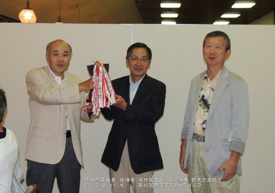 プレー後の懇親会では、優勝・矢作興三さん、2位・鈴木忠夫さん、3位・小田部信さん等各賞が発表され、