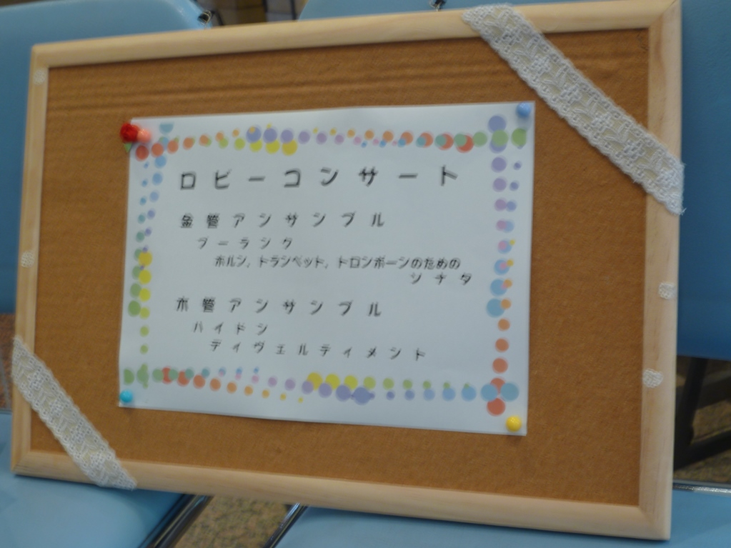 さて、恒例の開演前のロビーコンサートですが、初めてのホールで使い勝手がわからなかったのですが、